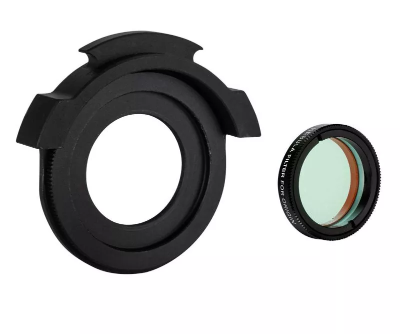 Der Filter verfügt über eine maschinell bearbeitete, schwarz eloxierte Aluminiumzelle mit einem gerändelten Rand für einfachen Halt bei der Installation. Celestron hat ihn mit einer Antireflexionsbeschichtung versehen, um Reflexionen vom Glas zu unterdrücken. Der Filter passt direkt in die Filterschublade in der vorderen Linsenzelle des Celestron Origin, wo sich das optische Fenster befindet. Das klare Fenster wird einfach entfernt und durch den Filter ersetzt. Origin behält seine optische Leistung auch mit installiertem Filter bei. Es wird kein weiterer Adapter benötigt.