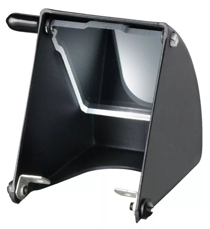 The dew shield for the Telrad viewfinder prevents fogging of the projection lens in adverse weather conditions. It features a built-in 90° deflecting mirror for easier use in the zenith position. Operation is very simple: When the TELRAD viewfinder is not in use, simply fold the dew shield over the viewfinder's projection lens. This eliminates the need to wipe away moisture, and the viewfinder is always ready for use. The dew shield is made of impact-resistant plastic and provides additional protection for the viewfinder's projection lens against scratches during transport. Retrofitting the dew shield is very easy and is done using the two screws on the side.