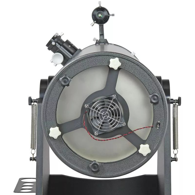 Nur ein leises unauffälliges Brummen, aber eine große Wirkung: Der integrierte 12V-Lüfter sorgt für eine bis zu 50% schnellere Auskühlung des Hauptspiegels. Damit erreicht Ihr Teleskop schneller die optimale Abbildungsqualität. Sie müssen nicht mehr länger warten.