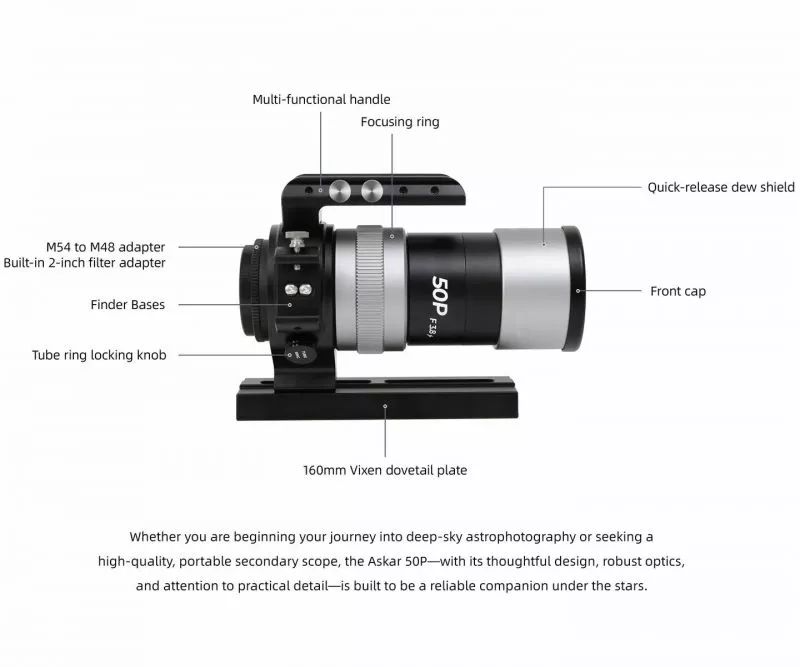 Das Askar 50P ist ein apochromatisches manuelles Teleobjektiv für Astrofotografie und Tagesfotografie.