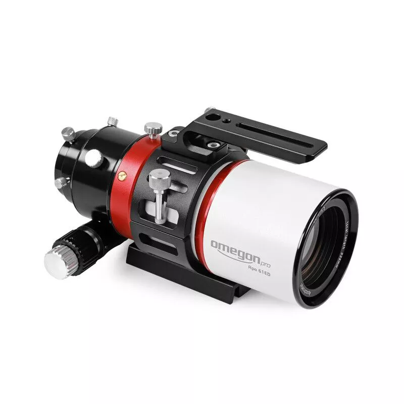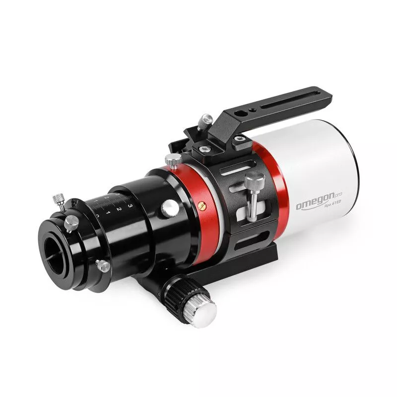 Der Tubus des Omegon Apo besteht aus einer CNC gefertigten Metallkonstruktion mit einem raffinierten Blendensystem gegen Reflexe. Der komplette Tubus wurde mit einem samtähnlichem, schwarzen Gewebe ausgekleidet.
